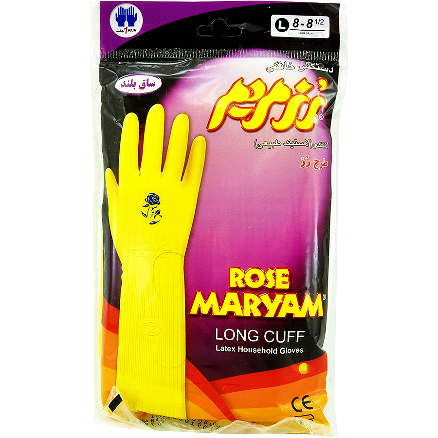 دستکش خانگی ساق بلند سایز L بزرگ رزمریم طرح رز