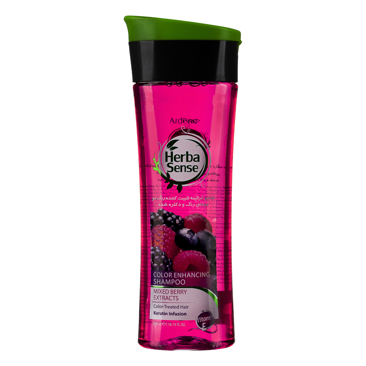 شامپو کراتینه تثبیت کننده رنگ مو حاوی عصاره توت های وحشی برای موهای رنگ و دکلره شده 300 میلی لیتری هرباسنس